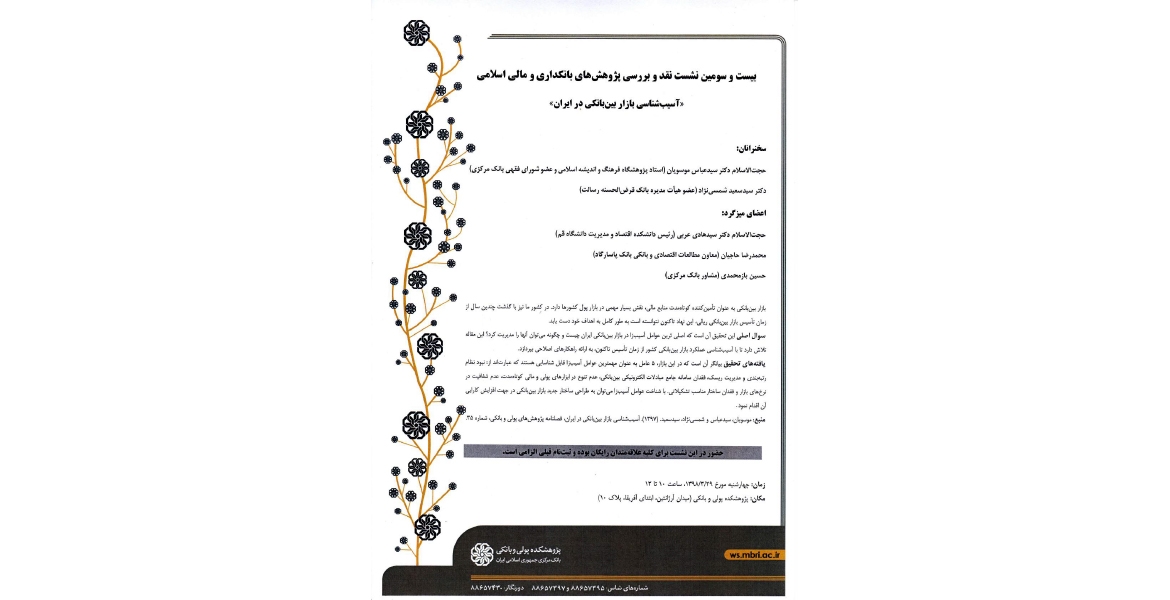 این نشست با هدف نقد و بررسی مقاله «آسیبشناسی بازار بینبانکی در ایران» که به قلم سیدسعید شمسینژاد و حجتالاسلام سیدعباس موسویان در شماره ۳۵ فصلنامه پژوهشهای پولی و بانکی منتشر شده است، برگزار میگردد..