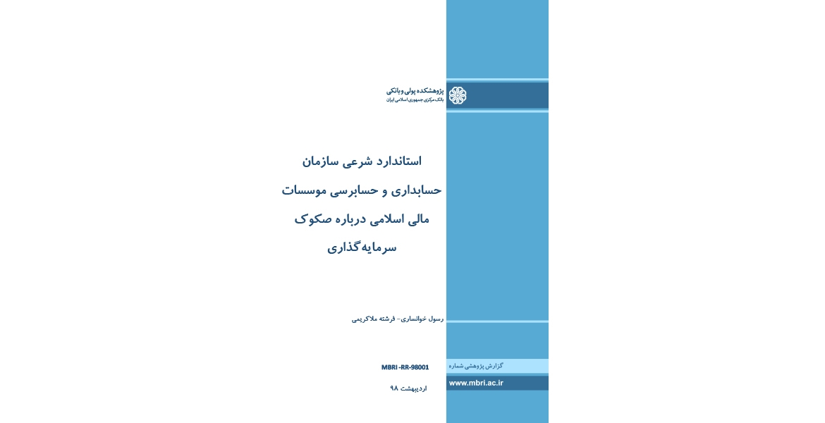 در گزارش حاضر ضمن ارائه متن کامل ترجمه این استاندارد، سعی شده تا در پاورقی، نکات و به ویژه وجوه اختلاف آن با مصوبات کمیته فقهی سازمان بورس و اوراق بهادار به عنوان مرجع شرعی مربوط به بازار اوراق بهادار در ایران توسط نویسندگان تبیین شود..