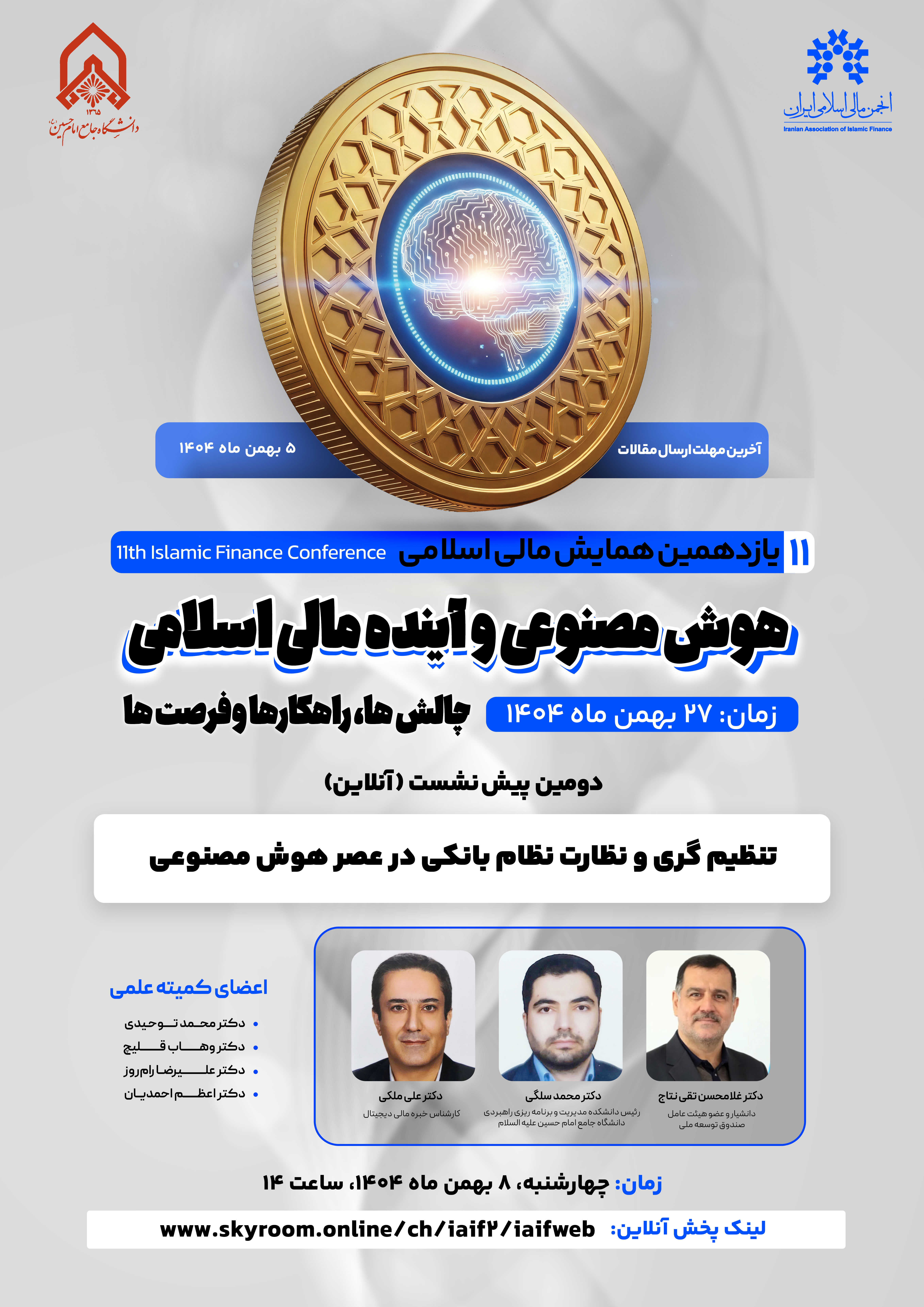 نشست «تنظیمگری و نظارت نظام بانکی در عصر هوش مصنوعی» روز چهارشنبه ۸ بهمن ساعت ۱۴ با همکاری دانشگاه جامع امام حسین (ع) به صورت آنلاین برگزار میشود.